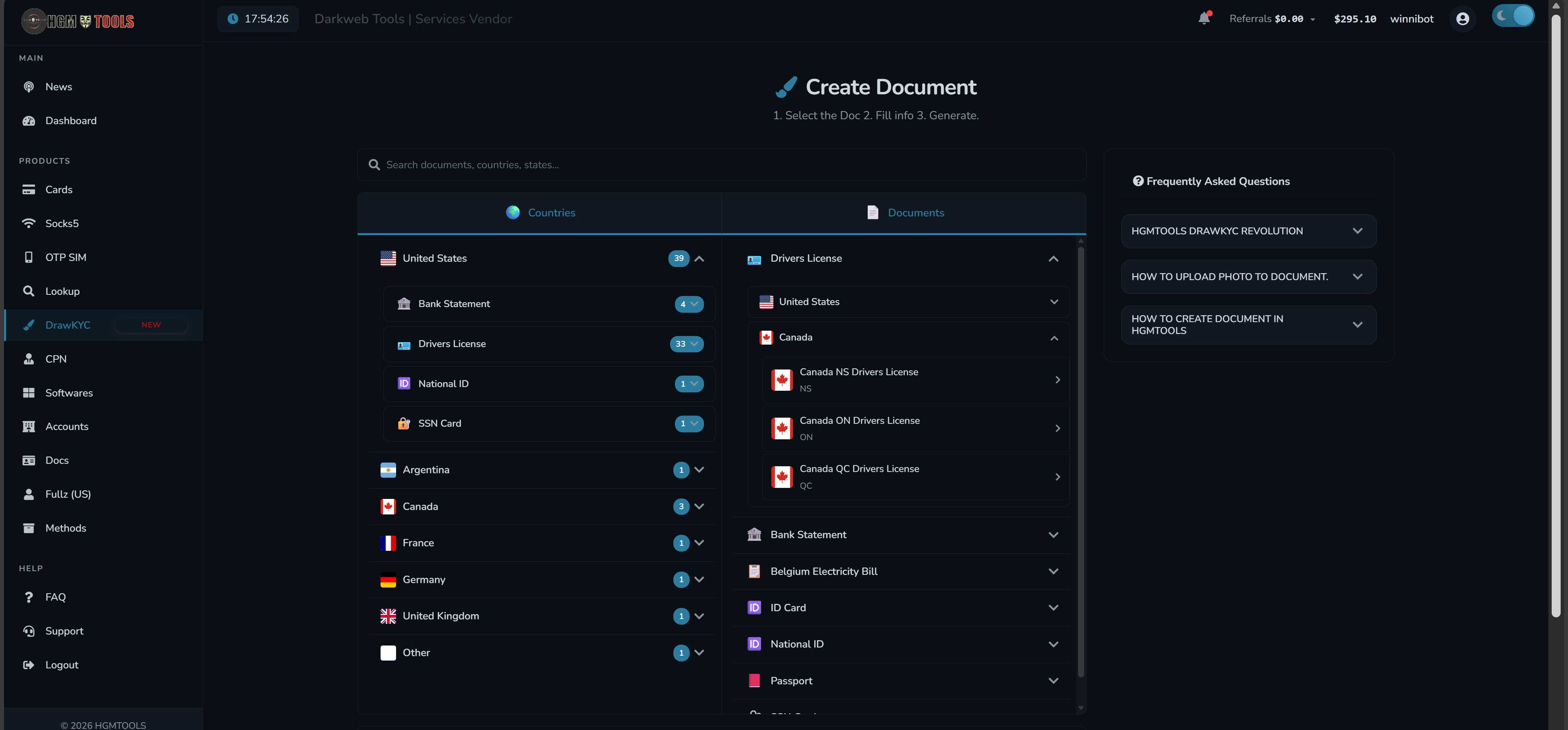 2. Click on s'DrawKYC" from the option menu. This will open the Documents and Countries.