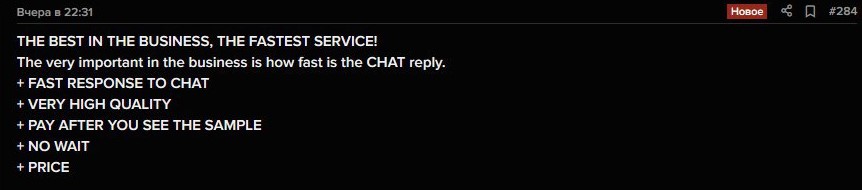 For 5 years we have been helping to pass verification and unblock bad accounts. Documents go through several stages of verification by specialists, so that every letter or number stands on its own place. You no longer have to wait hours for an answer. The average time from the moment of application to order issuance is 30 minutes. Still have doubts?