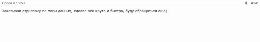 Personalized offer for new customers. Give a 30% discount on your next order for a review on the forum! Have time to order rendering by the end of the month at a discounted price.